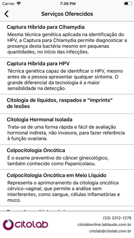 Você também pode entrar em contato laboratório pois os dados de contato estão sempre disponíveis.