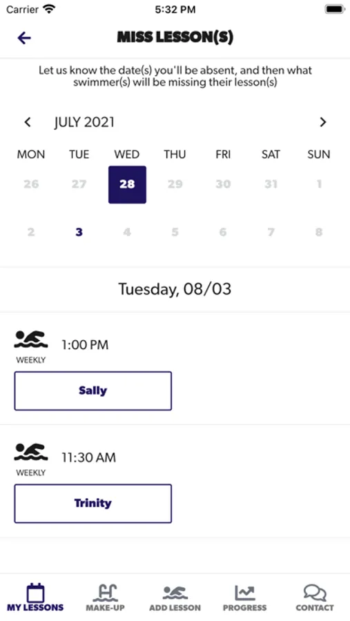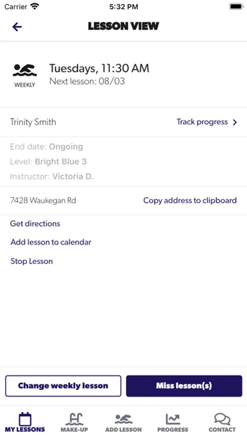 - Update perpetual weekly swim lesson day or time