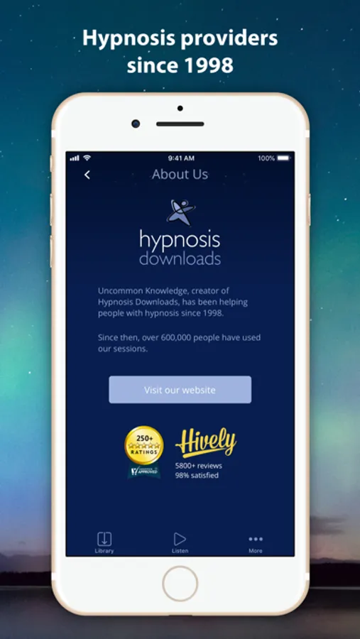 Sleep Well Hypnosis Downloads offers an auto-renewing subscription option. Your subscription enables access to 12 extra hypnosis audio sessions, plus any future sessions added to the Sleep Well Hypnosis Downloads app. Your subscription will automatically renew at the end of each term and your credit card will be charged through your iTunes account. You can turn off auto-renew at any time from your iTunes account settings, but refunds will not be provided for any unused portion of the term. This price is for United States customers. Pricing in other countries may vary and actual charges may be converted to your local currency depending on the country of residence.