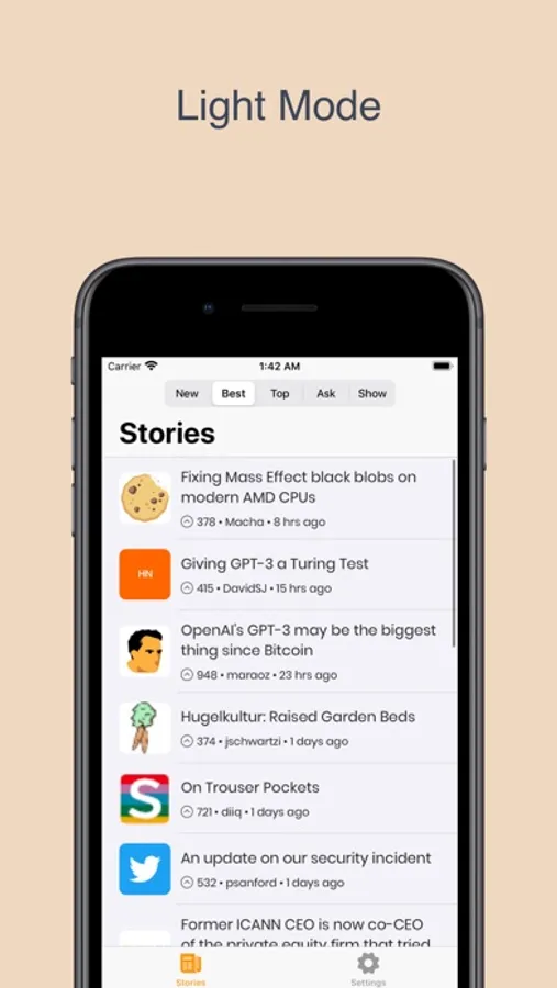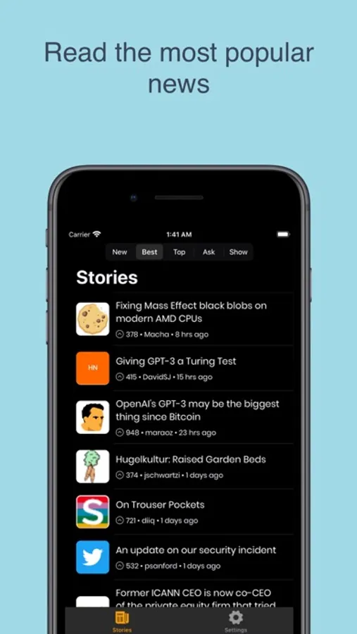 • Easily search between different type of posts: Top, New, Best, AskHN, and ShowHN.