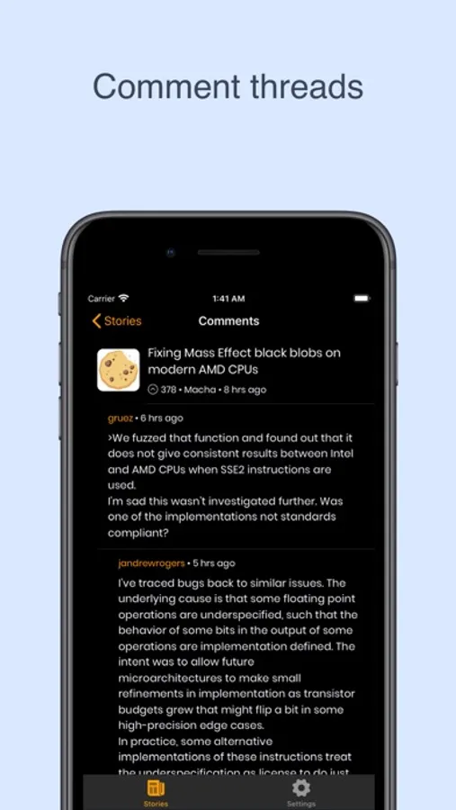 A minimalistic reader for Hacker News (news.ycombinator.com). You can quickly read the latest titles and open Safari from there.