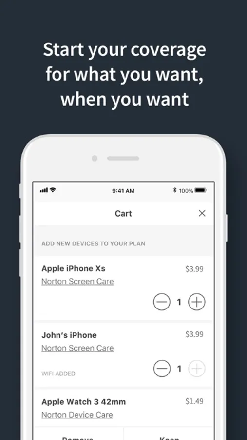NORTON DEVICE CARE provides damage protection for the devices you love. Add devices for coverage and submit claims anytime you want, right from the app. Protection plans for phones include cracked screen coverage. For all other devices, coverage includes repair or reimbursement for cracked screens, mechanical breakdown, accidental damage, surge protection, and more.