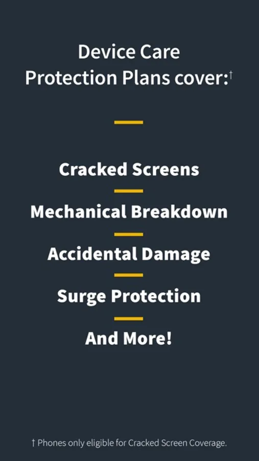 Damage coverage for your phone screens, laptops, tablets, TVs and more.