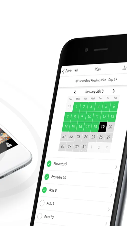 * Free Audio Bible: Click listen and you are instantly listening to the daily devotional plan. You can also look up any passage you want, the listen tab is in the bottom right hand corner at all times.