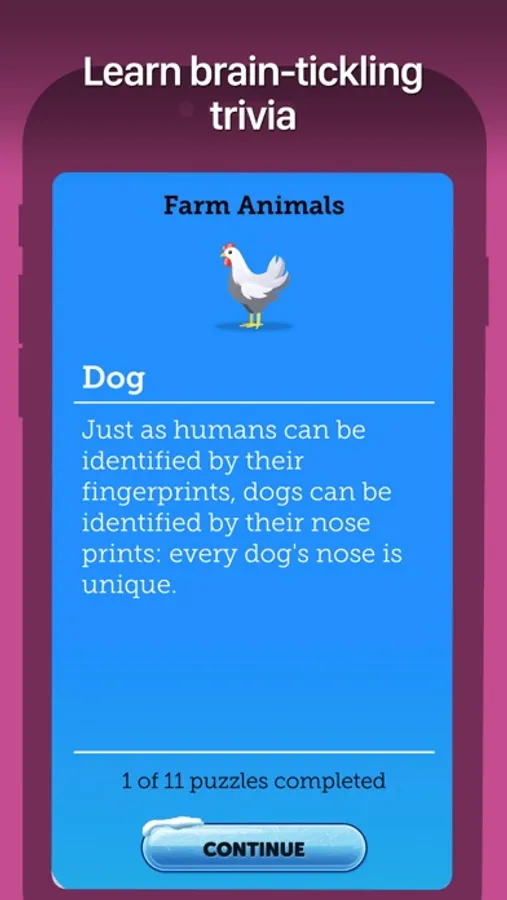 Explore the icy Word Chill: unscramble and discover words from the mixed letters. Find the correct one to solve each puzzle and unlock new themed levels! Enjoy on-topic brain-tickling trivia between each puzzle. What are you waiting for? Come chill out with Word Chill and grow your brain!