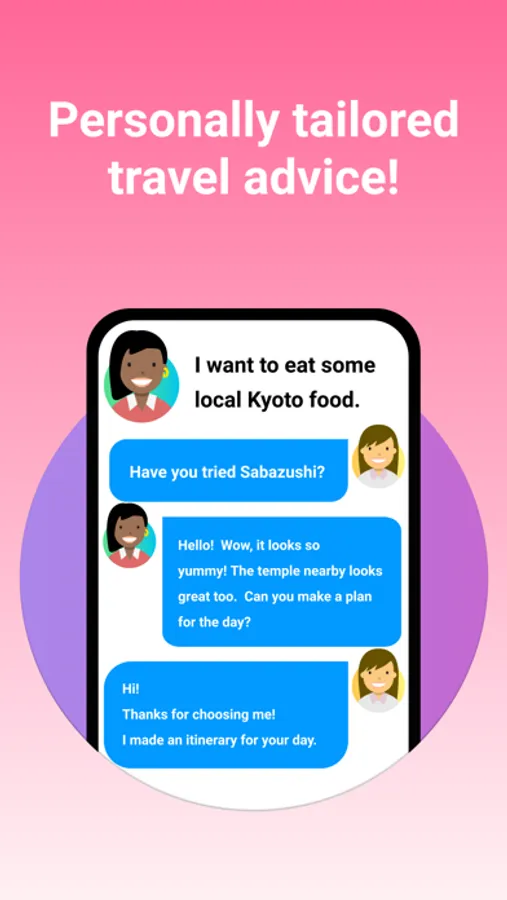Receive in the moment, custom travel advice, more tailored and personal than any web search.