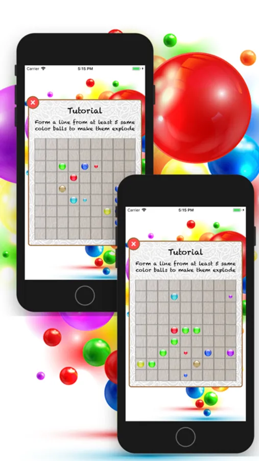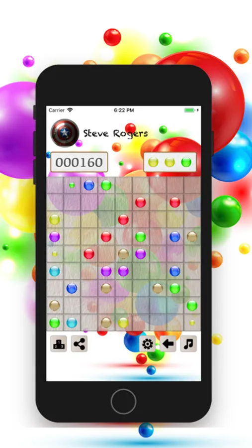 The game starts with a 9x9 board with some balls chosen out of seven different colors. You can move one ball per turn, and you may only move a ball to a particular place if there is a path (linked set of vertical and horizontal empty cells) between the current position of the ball and the desired destination. The goal is to remove balls by forming lines (horizontal, vertical or diagonal) of at least five balls of the same color. If you do form such lines of at least five balls of the same color, the balls in those lines disappear and you gains one turn and score. If not, three new balls are added, and the game continues until the board is full.