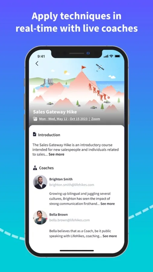 Developed over 25 years, LifeHikes proprietary methodology integrates coaching, content, and community into fun, interactive learning experiences. Professionals will understand their opportunities for skill growth through clear, data-driven pre- and post-assessment reports. Plus, our Hike learning experiences provide recommendations, in-app practices, and exercises underpinned by our proprietary technology. This enables professionals to grow their skills outside of their live training using our LifeHikes Mobile App.