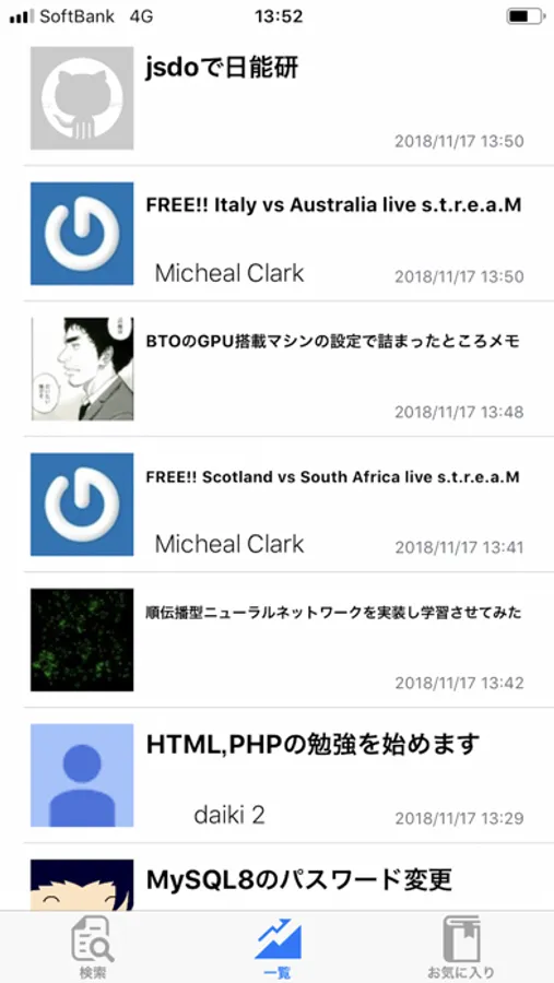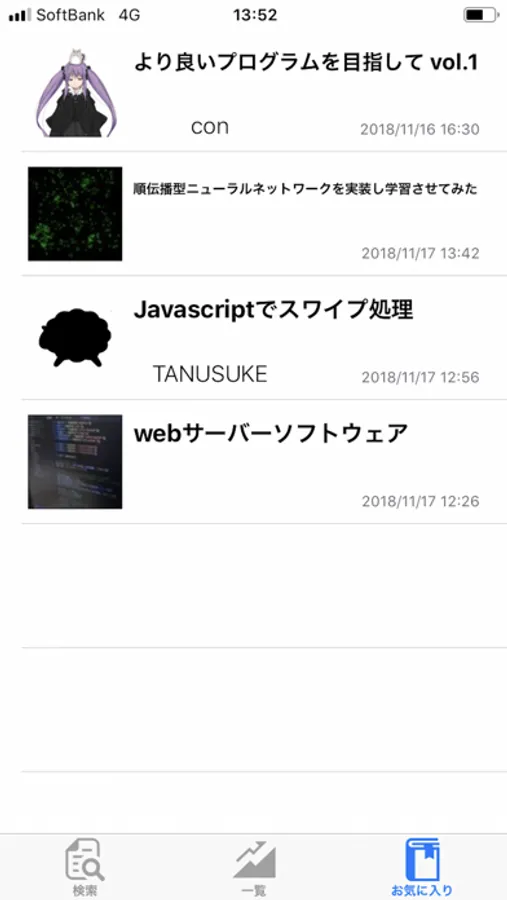 気になる記事の検索はもちろんのこと、最新の投稿やトレンド(1日前からストックされた記事)を一覧で表示!