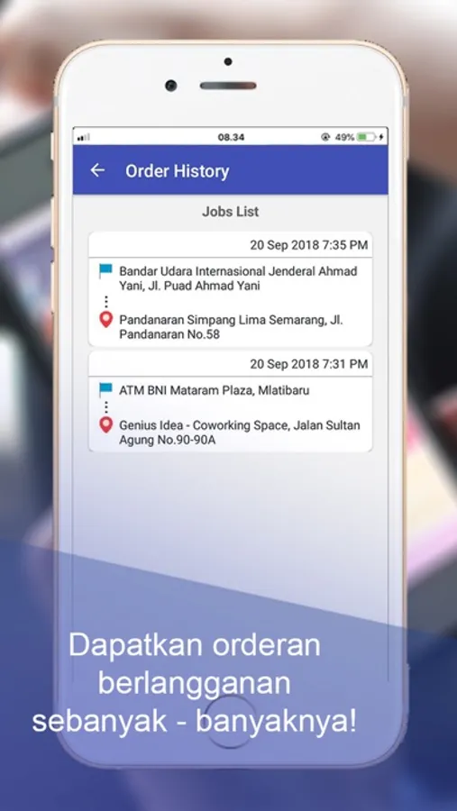 2. Terima Pekerjaan : Terima pekerjaan untuk mendapatkan informasi penumpang yang akan dijemput