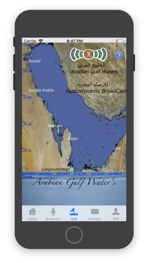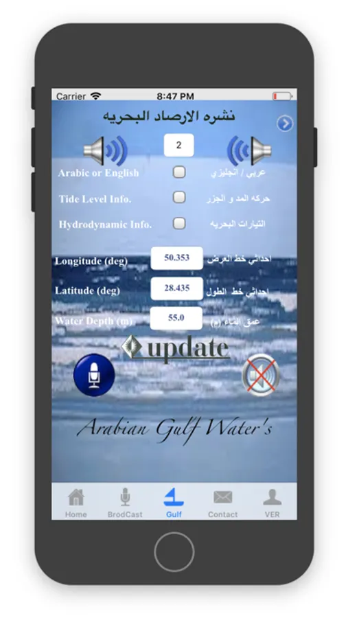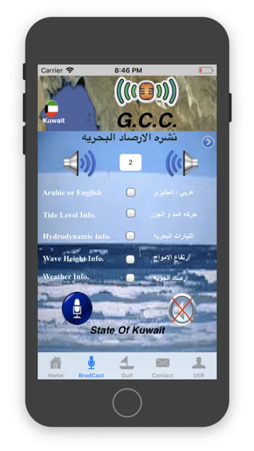 To Listen to live interactive audio stream for online water hydrodynamics' prediction, weather forecasts and live Broadcast hourly updates for Gulf Corporation Council (GCC) Countries and Arabian Gulf water's.