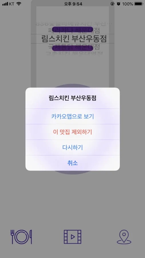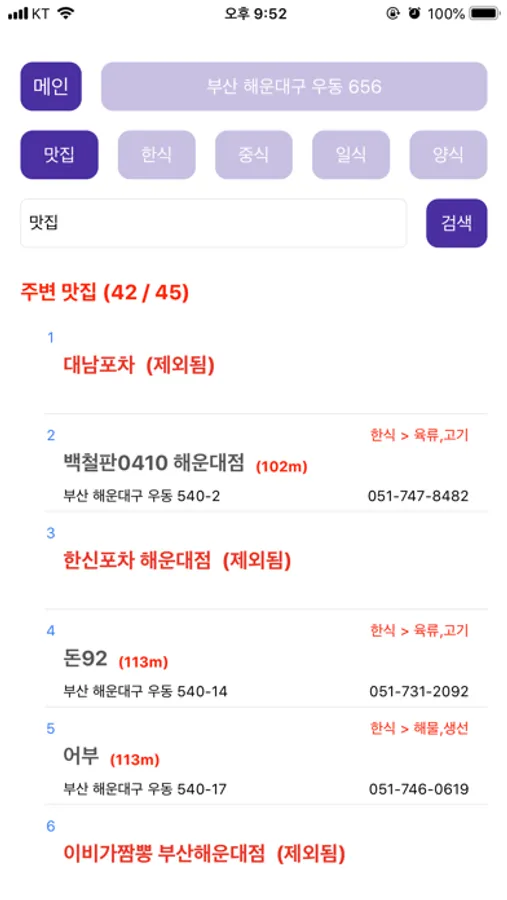 맛집 목록에서 정말 아니다 싶은 곳은 직접 제외시킬 수 있습니다.