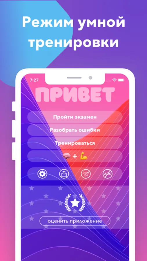 • Режим умной тренировки (приложение автоматически подберет для Вас вопросы, основываясь на Ваших предыдущих действиях)