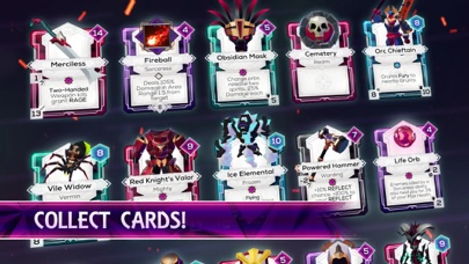 * Collect cards with equipment, abilities, creatures and environments