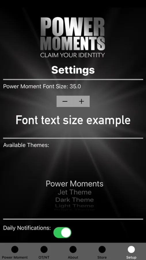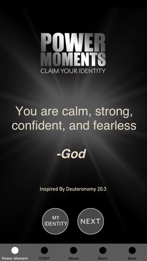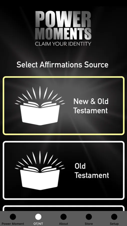 - "Choose Your Power Moments" filters affirmations from the Old, New, or Both testaments