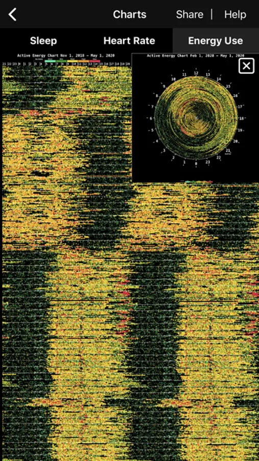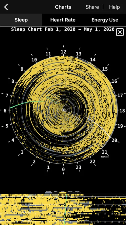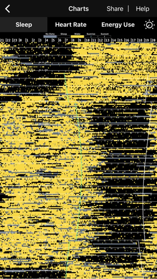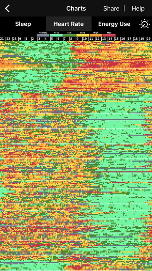 * Examine the chart to see patterns of activity, heart rate and sleep