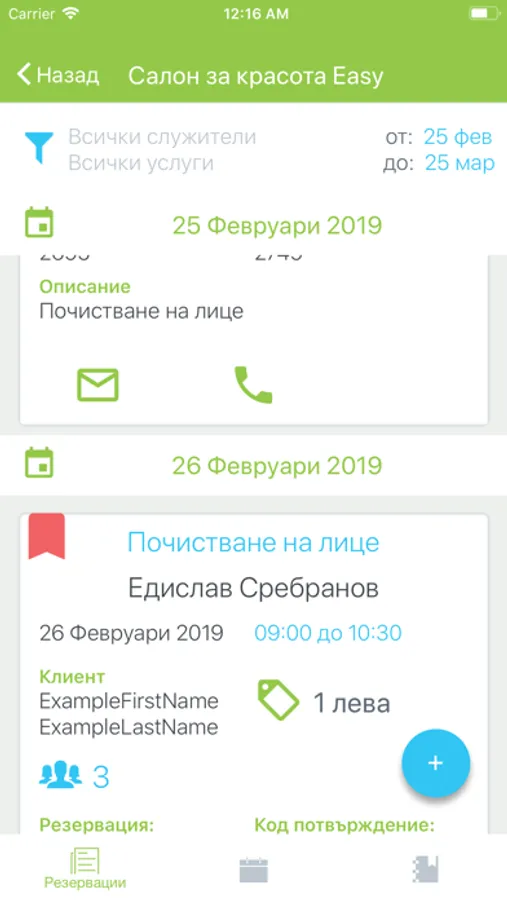 - От резервационната система, можете да изпращате индивидуално съобщение до клиентите и служителите си, както и да съхранявате онлайн бележки и коментари свързани с клиент ползвал услугите Ви.