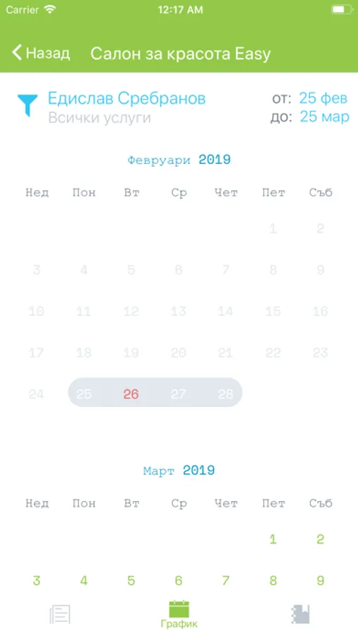 - Контролиране натовареността на графика на Вашите служители не само в предпочитаните часове от деня, но и в ненатоварените периоди -на редовни или промо цени.