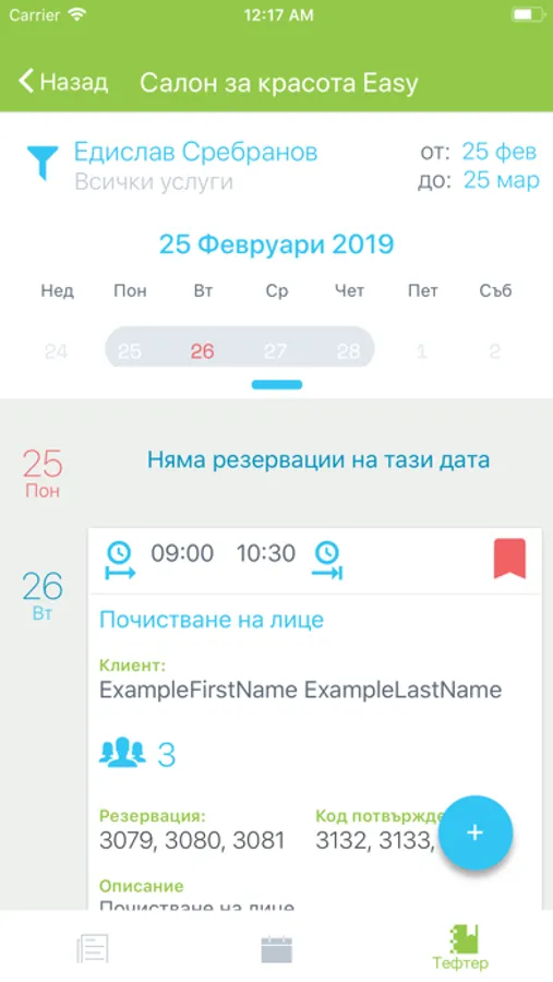 - Управление на вътрешните ви резервации и цялостния график на извършваните услуги в обекта Ви - интегрирано с резервациите от клиенти през интернет.