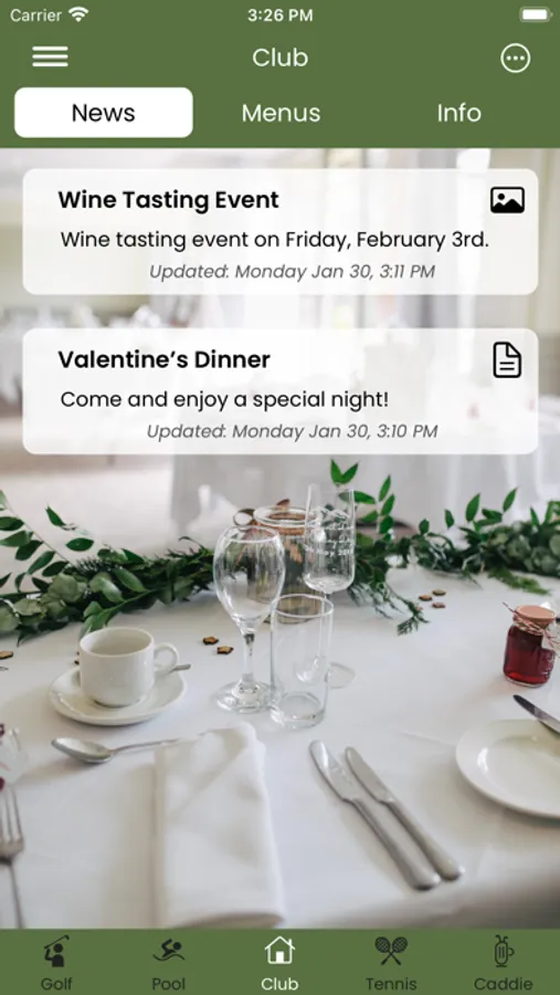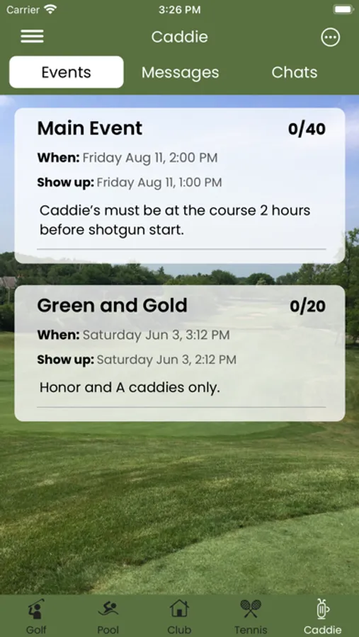 • Allow caddies to sign up for events and communicate with the caddie