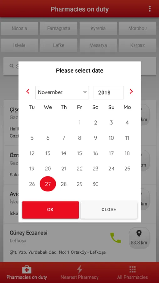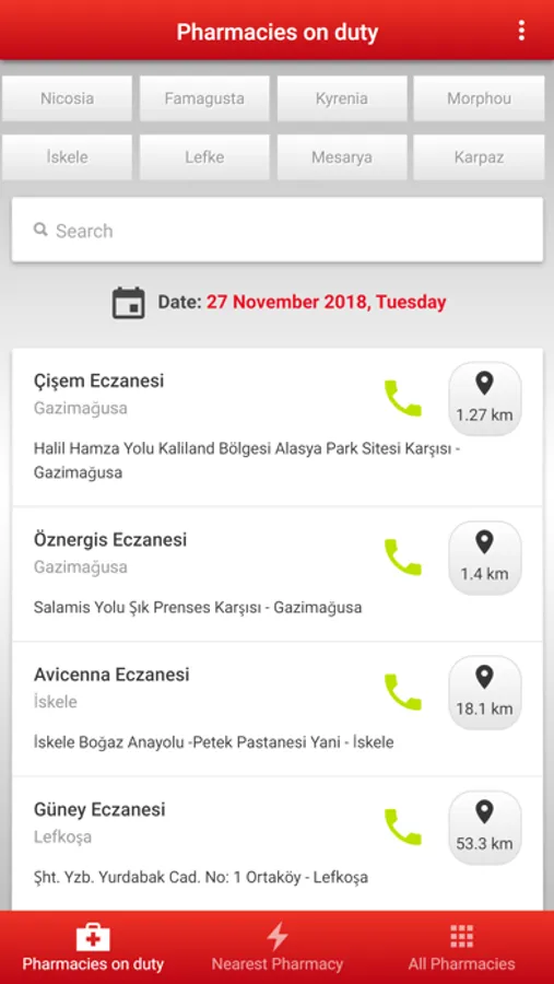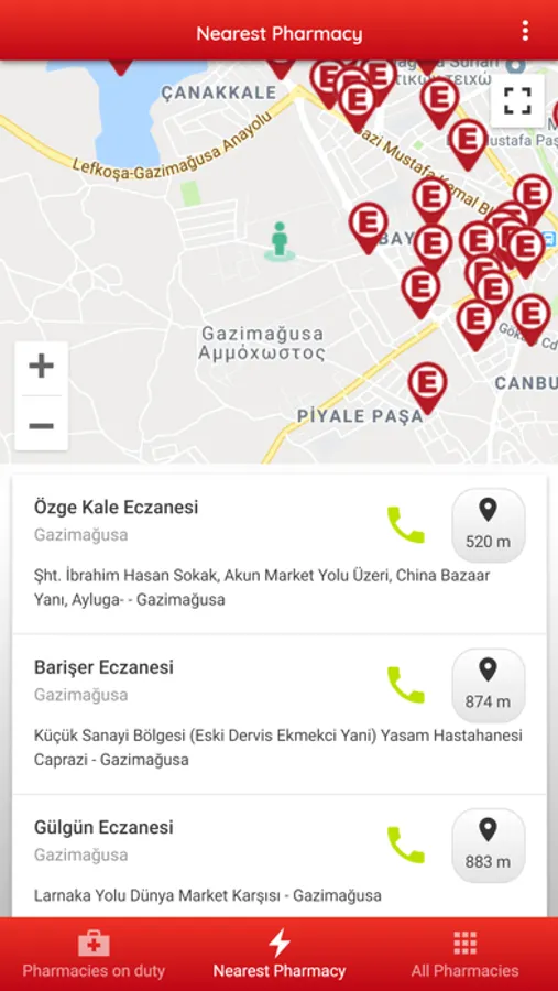 Our mobile application shows the list of the pharmacies with all locations in North Cyprus, and also see pharmacies on duty.