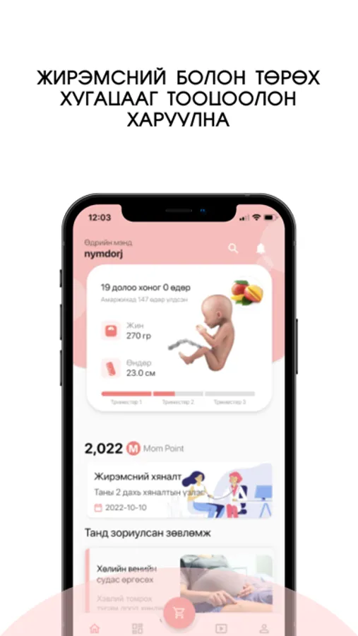 Хэрвээ та жирэмсэн бол сүүлийн сарын тэмдгийн өдрөө зөв оруулахад л Ээжүүд апп таны ургийн хөгжлийн үе шатад тулгаарлан зөвхөн танд зориулсан зөвлөгөө, мэдээллүүдийг өгөөд зогсохгүй жирэмсний хяналтын товлолууд, хэзээ төрөх зэргийг бодож гаргана.