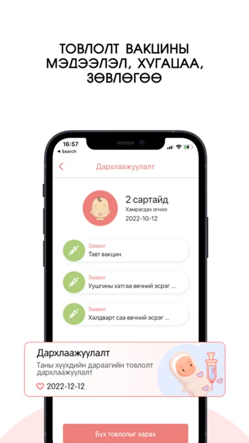 - Нярайн асаргаа, хооллолтын талаарх мэдээллүүдийг авах боломжтой.