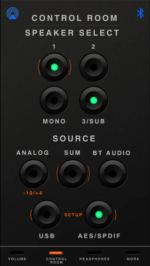 Bluetooth remote control for Dangerous Music D-BOX+. Seamlessly operates the following functions: