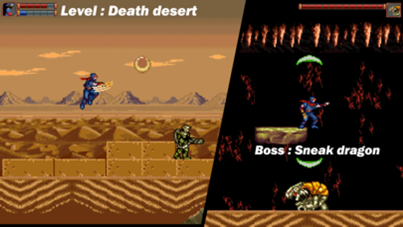Ninja Ranger tells the story of a legendary ninja--Ray, he punishes evil and save the world. In the game you will play a ninja superhero and fight against evil enemies. The game uses a realistic pixel style, bringing you back to the 8-bit, 16-bit pixel game era; the gameplay is also using the classic 2D platform action gameplay, this is an action game with a refreshing impact. If you are an action game player, please see the detailed description below.