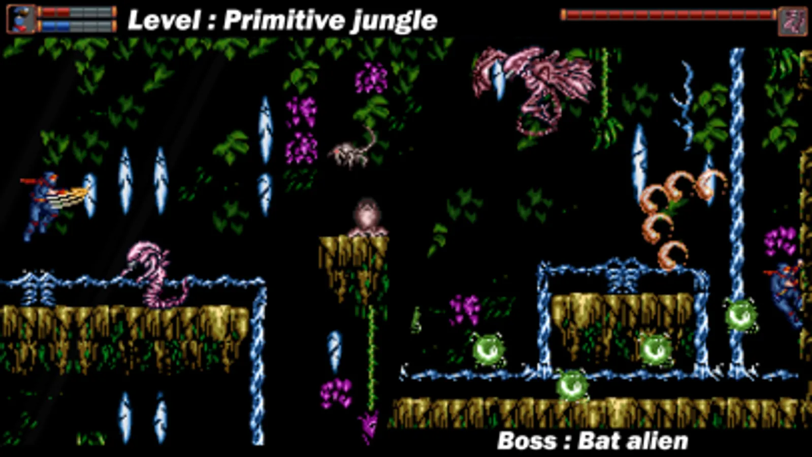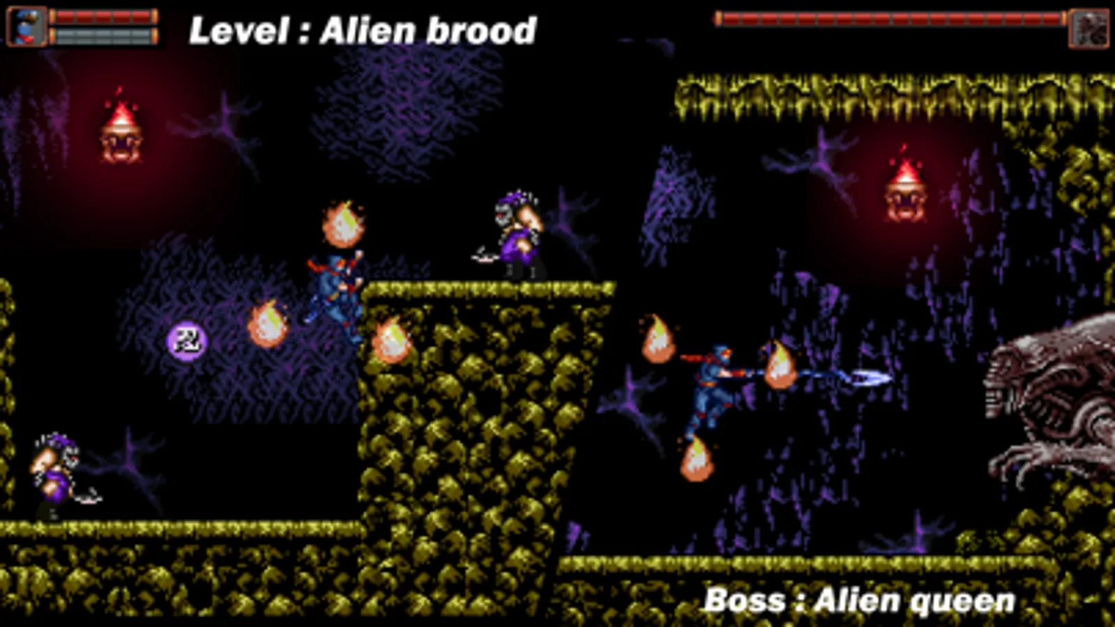 1 Gameplay: Classic 2D platform action game, the super ninja hero can walk, jump, climb and attack the enemy on various terrain platforms;