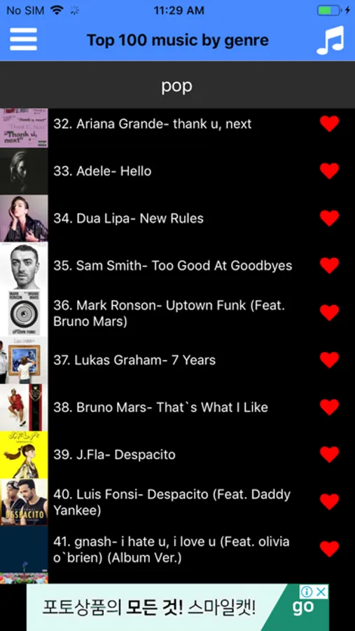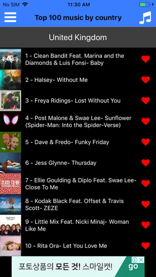 . Select the selection box at the top of the screen and enjoy the music of the songs that are currently popular,