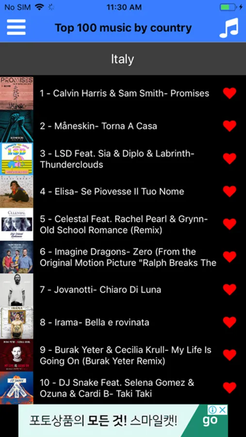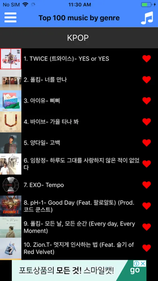 Find the top 100 charts that are popular in the US, UK, France, Canada, Australia, Japan, Germany, Spain, the Netherlands, Portugal, Italy and Mexico. Do you want to know about Top 100 in Korea? No problem. You can check it with one touch!