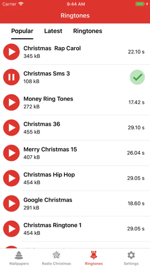 Give your phone a musical Christmas makeover! Free download our playlist with songs of Christmas and choose your favorite jolly tune! Let it snow with our collection of 700+ ringtones for iPhone with Xmas themes! Start the Christmas countdown and wait for New Year with these upbeat songs!