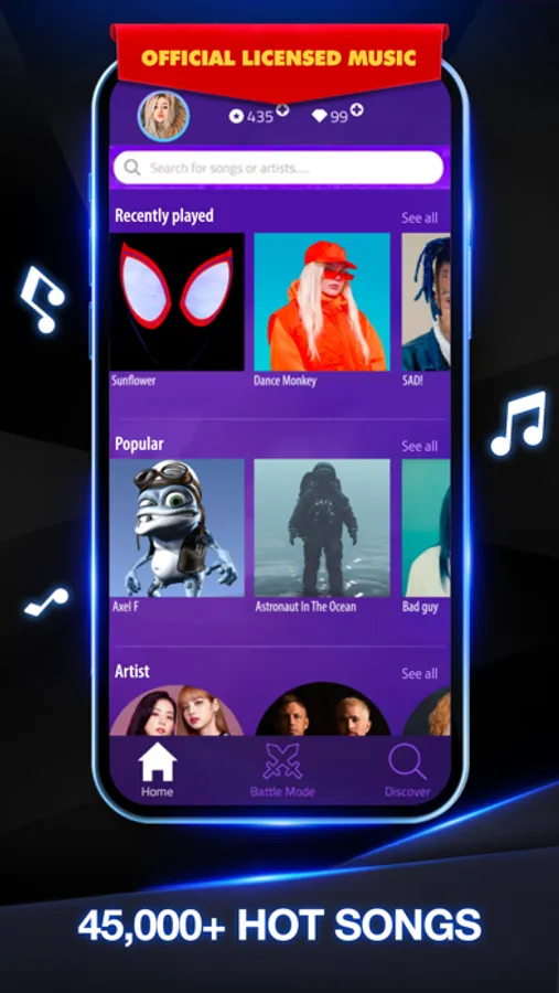 1. Appealing, modern and diverse music genres to satisfy every music taste! We have over 1000 songs waiting for you to conquer.