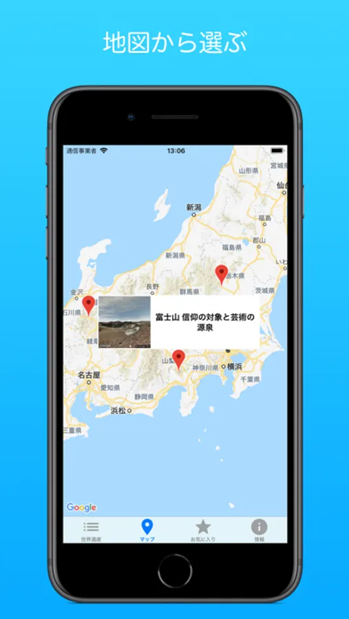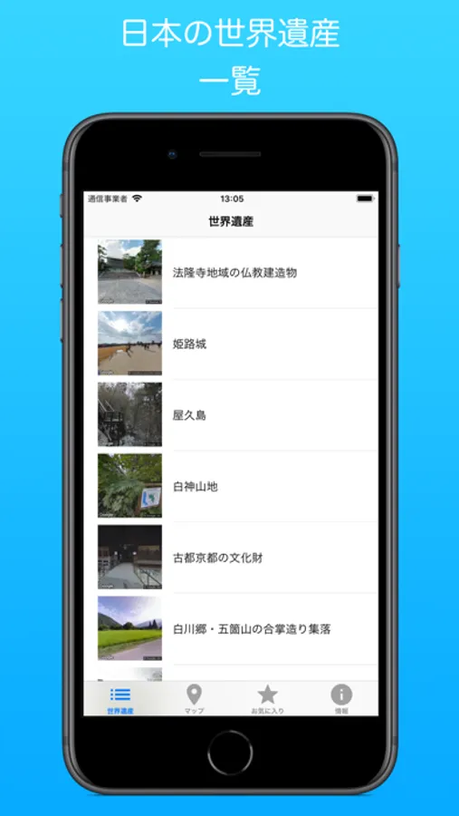 ストリートビューで日本の世界遺産を巡るアプリです。
