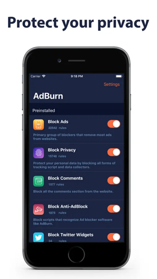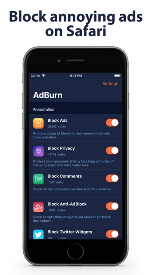 AdBurn use native Safari content blocker technlogy that prevent Safari to download the ads. For this reason you will have a faster navigation and less data consumed!