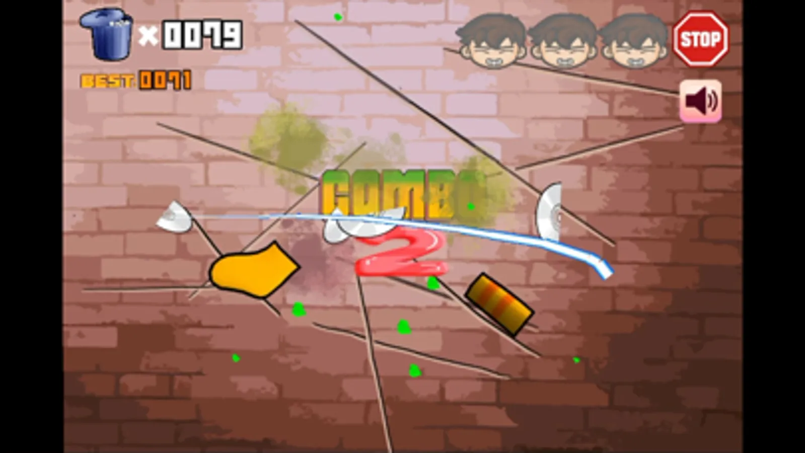 幫幫憤怒的媽媽! 不要讓雜物落地,只要滑過亂飛的雜物,雜物就會被切成兩半清潔溜溜~ 記得避開代表靈感的鉛筆,以免引爆鉛筆炸彈!