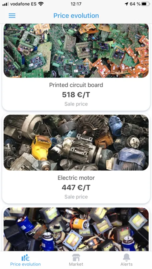 Increase the profitability of your production of cardboard, paper, plastics, scrap and metals. Contact through the publications of the App and get management alternatives, better prices and payment methods.