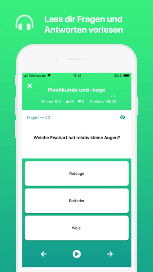 - Im Vorlese-Modus können die Fragen und Antworten der Reihe nach vorgelesen werden. Somit kann auch unterwegs gelernt werden.