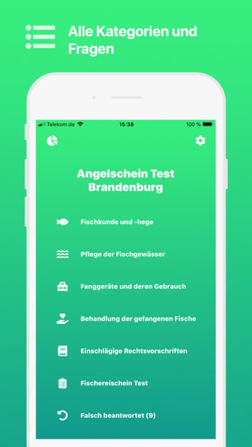 Die App enthält alle amtlichen Prüfungsfragen für den Fischereischein Brandenburg.