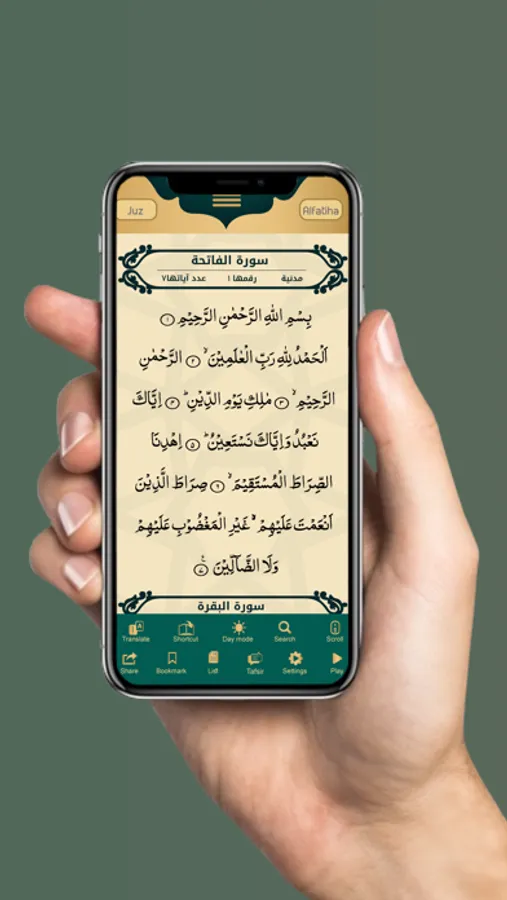 Read the Holy Quran in Arabic alongside its translation. Provides verse by verse audio playback, color coded Tajweed, repeat functions, unlimited bookmarks, search, excellent navigational controls, several translations and reciters and much more.