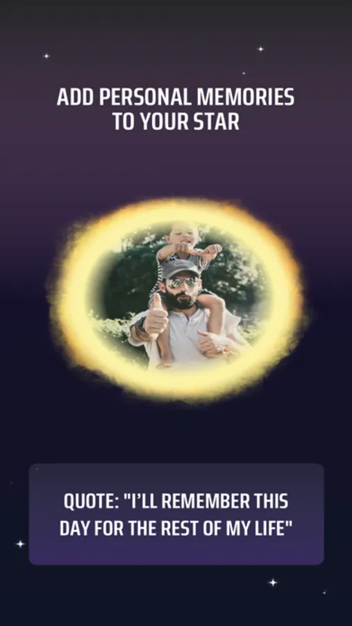 By adding your OSR registration code you can now view your personal star in Virtual Reality. Get up close and explore the surface of your star. A unique virtual rendering of your star lets you learn more about your star coordinates, star date, occasion and star color. You can use the VR mode to fly to your star and take screenshots from different angles. A list of your saved stars is available in the 2D menu. Here you can add memories to your screenshot to capture the essence of your star. Now your star and its unique message are part of the night sky. The app even allows you to share it with the world!