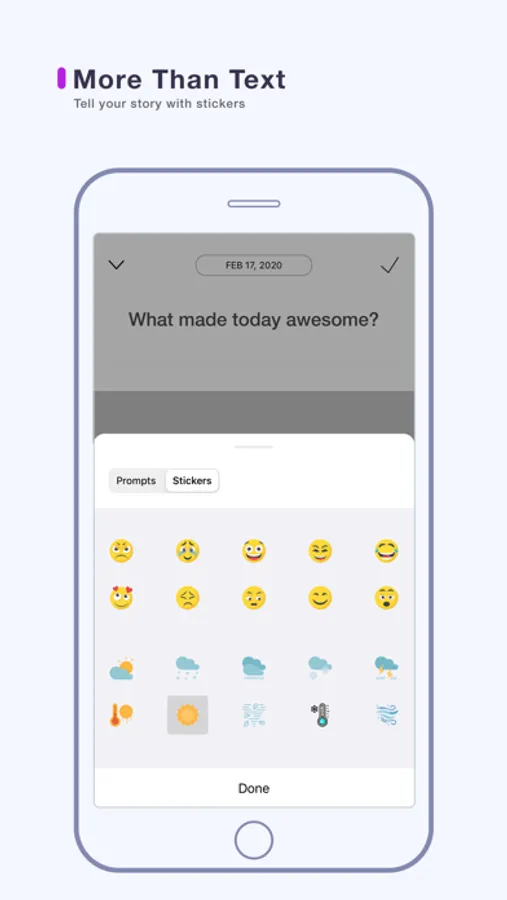 Simpler Diary gives you the flexibility to make this diary yours. With each new entry, you’ll be greeted with a prompt and an emoticon to add how you’re feeling. You have the option to:
