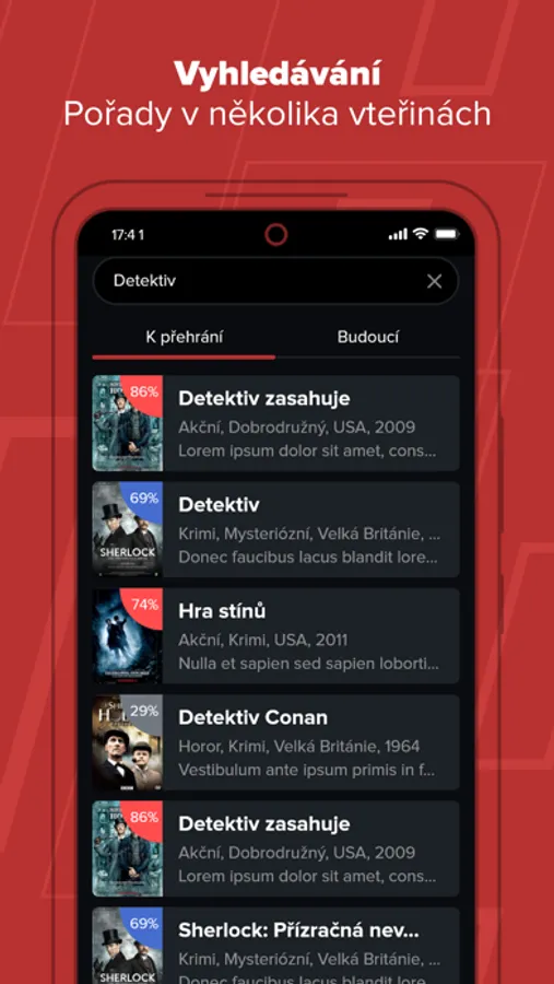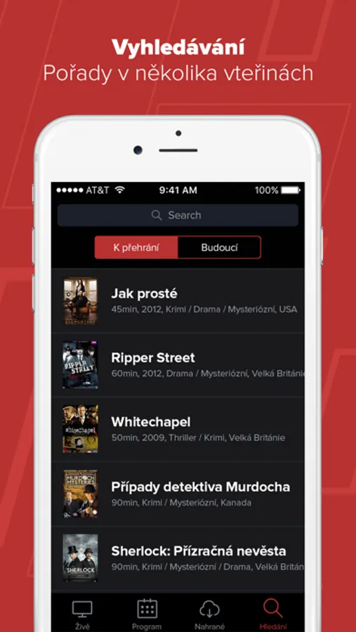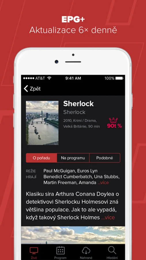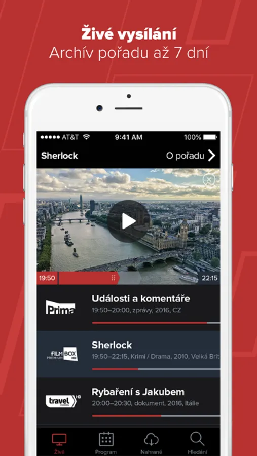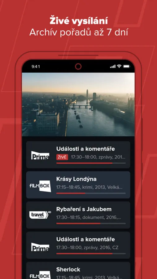 - živé televizní vysílání s možností přehrání od začátku