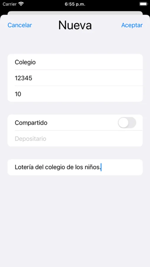 Con esta aplicación podrás guardar todos los números a los que juegas a la lotería de Navidad (u otro sorteo), añadiendo información como el dinero que juegas a cada número o si lo compartes con alguien.