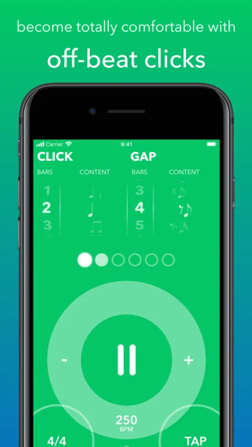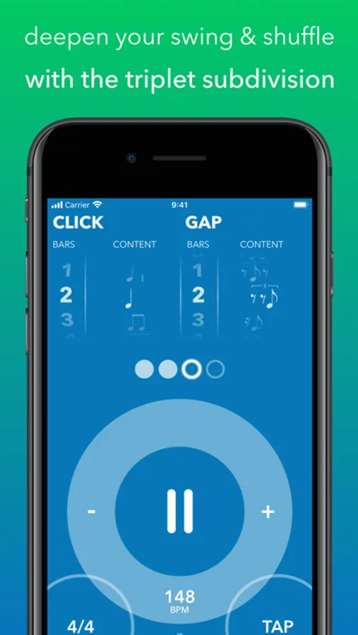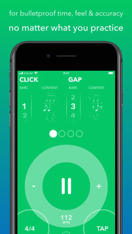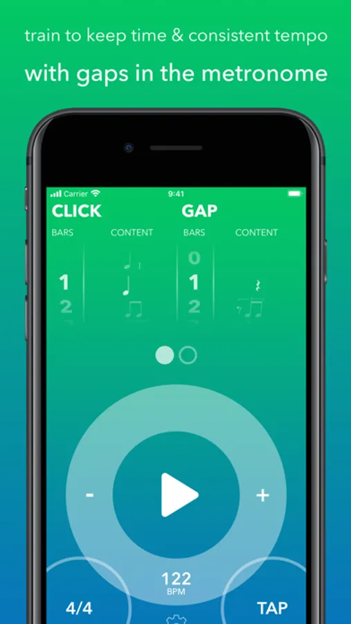 Unlike standard metronomes, which only provide time, Gap Click helps you improve your sense of time. Gap Click is more than a metronome that focuses on improving your ability to keep tempo, become more aware and comfortable with off-beat clicks, and become bulletproof and accurate with all notes of the subdivision.