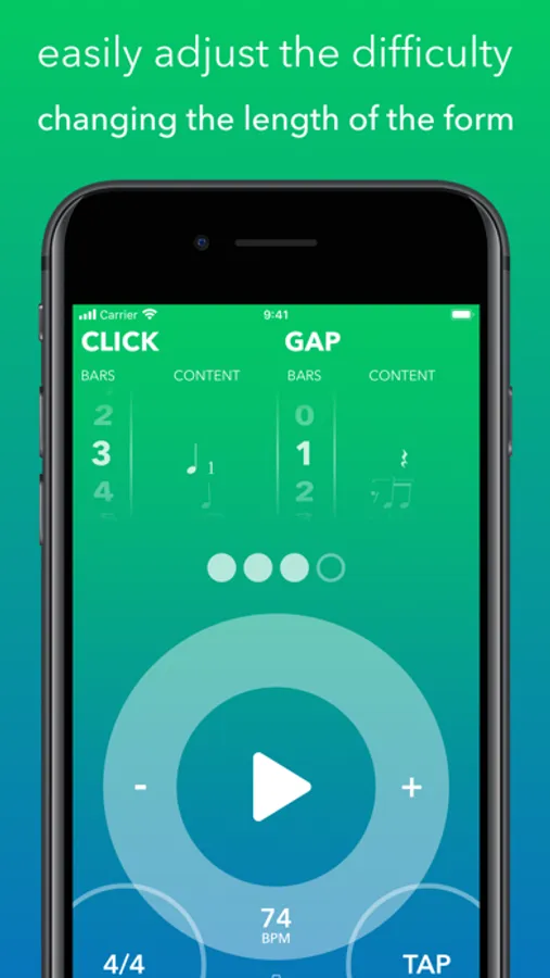 Next, you can experiment with all kinds of off-beat patterns in the Gap Bar, which moves the click from the downbeat position to a different location. Can you still play your instrument and maintain the downbeat internally even when you hear the click sound on an off-beat?