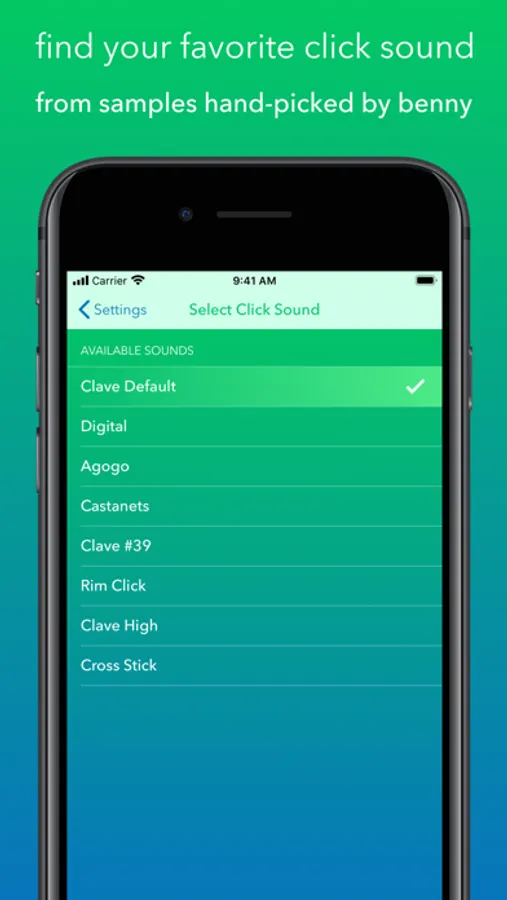 • Find your favorite sound from a variety of click samples hand-picked by Benny