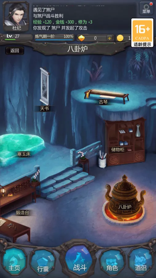 3、洞府玩法,开天书,饮灵泉,种仙草,打坐修炼,参悟天机,炼丹修行,还有独特的五行炼丹玩法,炼丹不局限于药草本身,丹药由不同的五行灵气组成,可以用不同的药草炼制同一种丹药,可以利用相生相克的规则提升药草灵气。