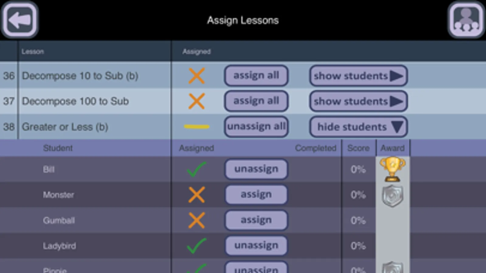 1. Create individual student profiles to track each kids’ progress separately. No purchases are allowed from a student profile.